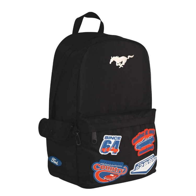 Mochila Escolar Mooving 2026 Ford Art.1639126.Logo metálico aplicado en el frente.Bolsillo frontal con apliques de goma y parches bordados.Material: Twill.Presentación: Por unidad