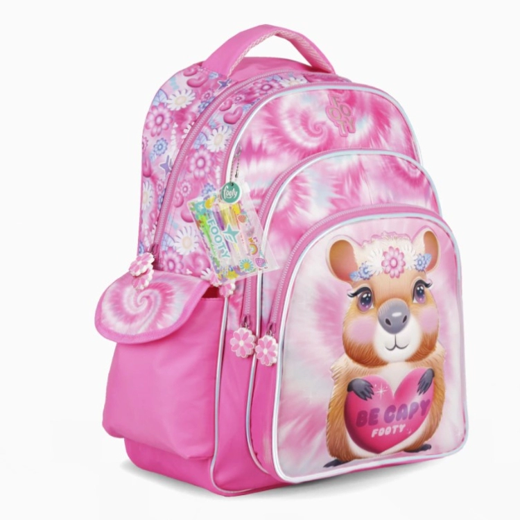 Mochila Escolar Footy 2026 Capibara Rosa 18" Art.F26363.